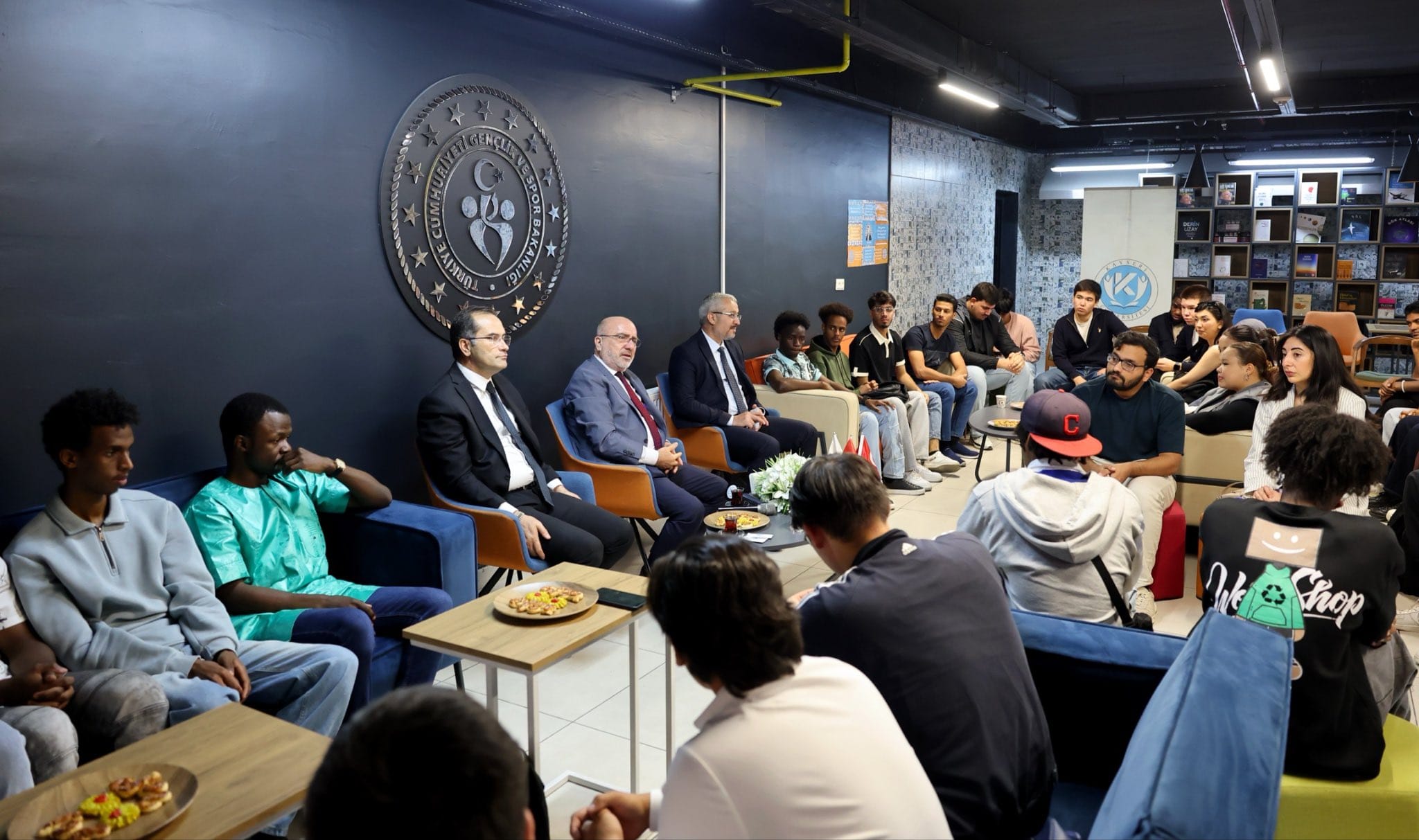 Rektörümüz Prof. Dr. Kurtuluş KARAMUSTAFA Başkanlığında Üniversitemiz Üst Yönetimi, Uluslararası Öğrencilerin Karar Alma Süreçlerine Katılımını Sağlamak Üzere Genç Ofiste Öğrencilerle Buluştu
