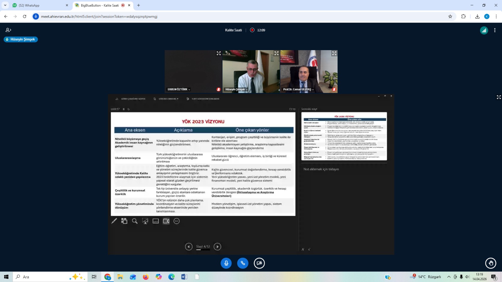 KASGEM Ekibi, Kırşehir Ahi Evran Üniversitesi tarafından 17/04/2026 tarihinde çevrim içi olarak düzenlenen ve Kalite Saati-YÖK 2030 Vizyonu'nda Kalite Amacı'nı konu edinen toplantıya katıldı.
