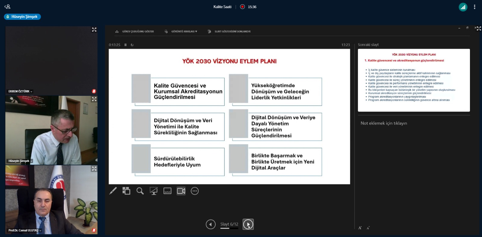 KASGEM Ekibi, Kırşehir Ahi Evran Üniversitesi tarafından 14/04/2026 tarihinde çevrim içi olarak düzenlenen ve Kalite Saati-YÖK 2030 Vizyonu'nda Kalite Amacı'nı konu edinen toplantıya katıldı.